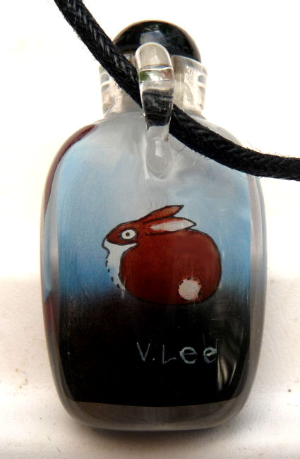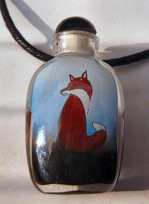 Fox and Rabbit Enamel Glass Pendant Bottle by Victor Lee Enamel Art