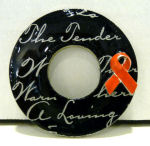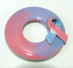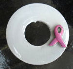 Simple and elegant to express your sentiment perfectly. White enameling on a recycled washer from Habitats for Humanity with applied pink ribbon for Breast Cancer awareness. Each pendant is hand enameled and created by Victoria Yater and comes with a cord for wearing. Measures 1-3/8" diameter. Signed and dated on back by artist. Click here to see a short video showcasing her beautiful work.