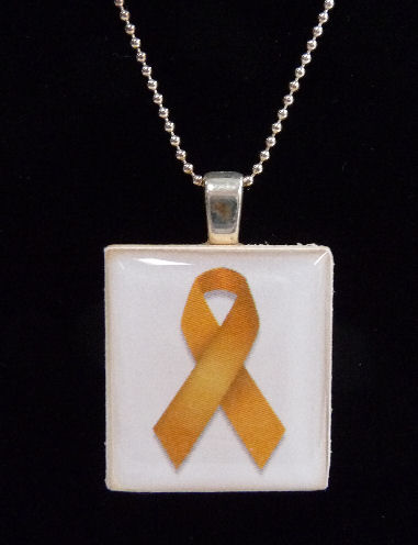 Childhood Cancer Awareness Scrabble Tile Pendant with Sterling Silver Chain