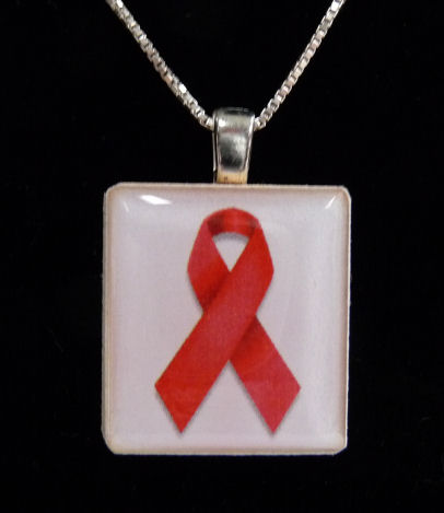 Aids Awareness Scrabble Tile Pendant with Sterling Silver Chain